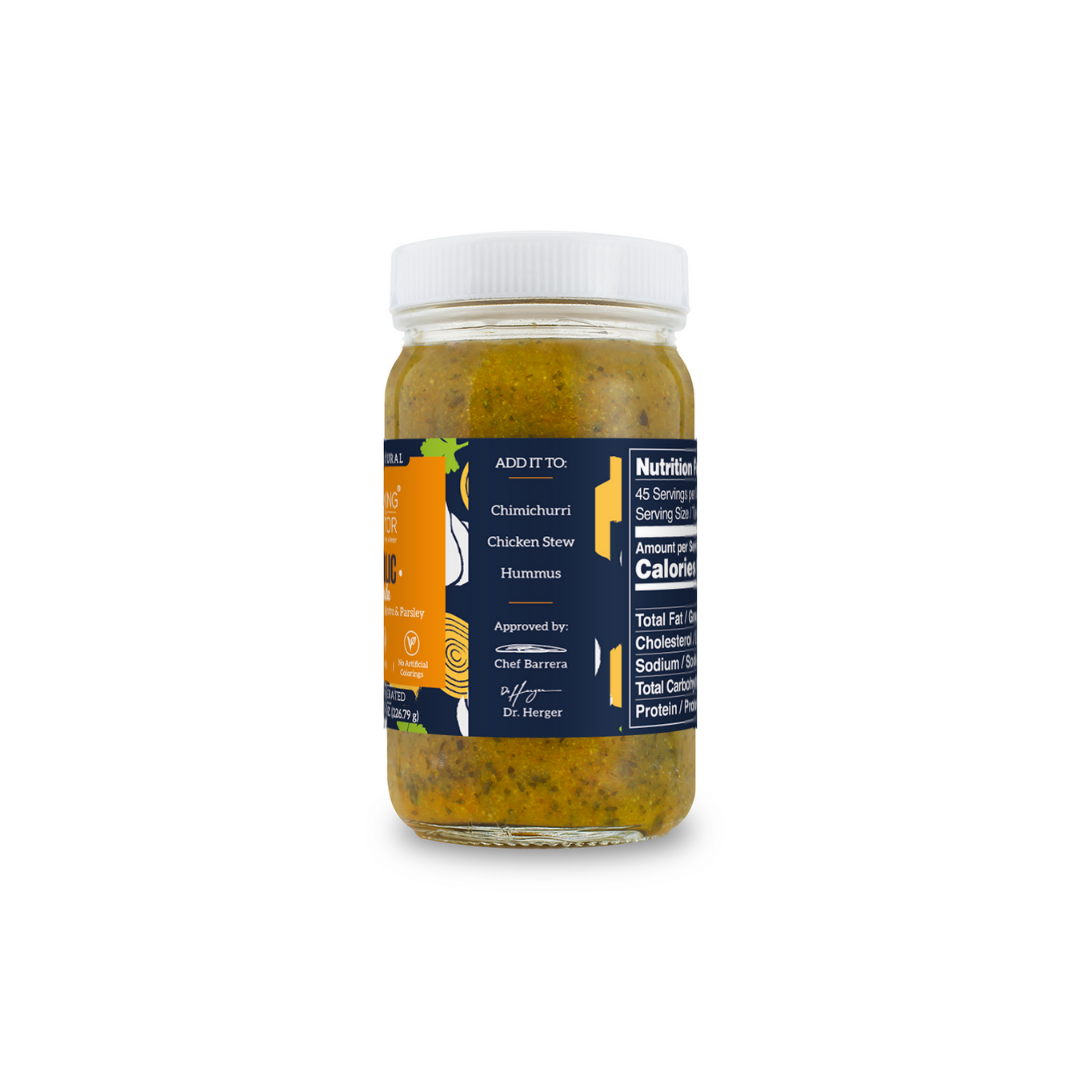 La Base para Cocinar con Cúrcuma, Pimientos Dulces y Cilantro es la “Condimento Latino”, perfecta para hacer adobos, salsas, como base para cocinar o para agregar sabor a tus comidas. ¡El único producto del mercado elaborado con cilantro y culantro fresco!